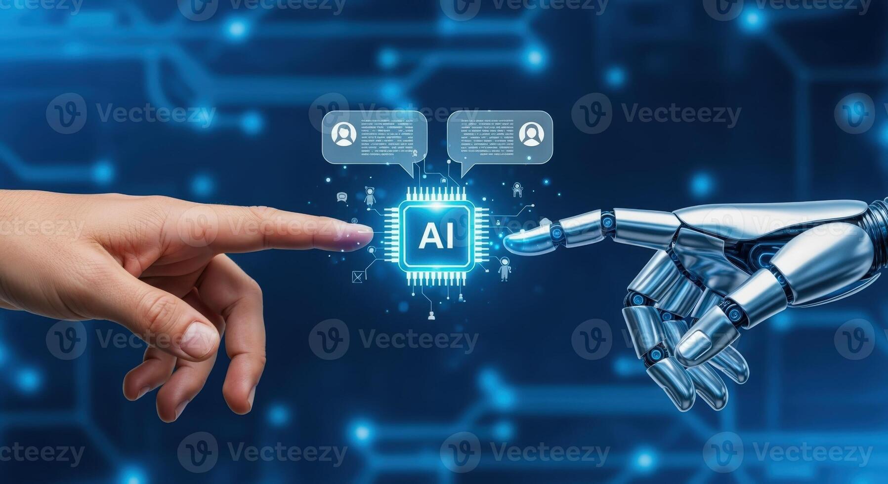 Human and Robot Interaction Concept Depicting Artificial Intelligence Integration with Human Touch in Futuristic Technology Pro Photo