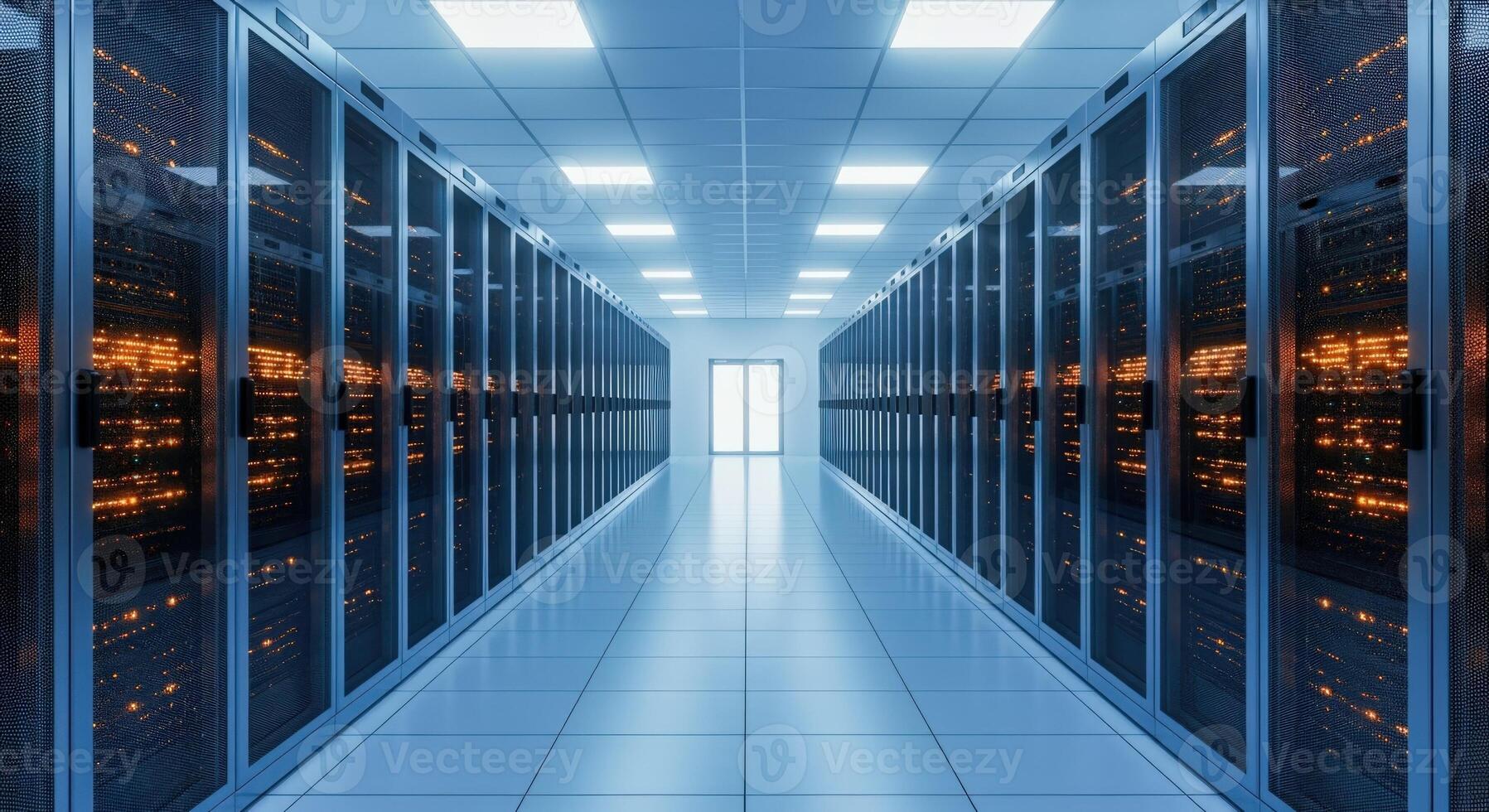 Data Center Corridor with Server Racks, Technology Infrastructure, and Clean Room Environment for IT Operations Pro Photo