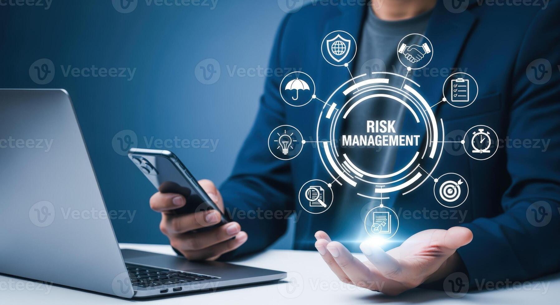 Risk Management Strategy Business Professional Analyzing Data and Implementing Solutions for Financial Security and Success Pro Photo