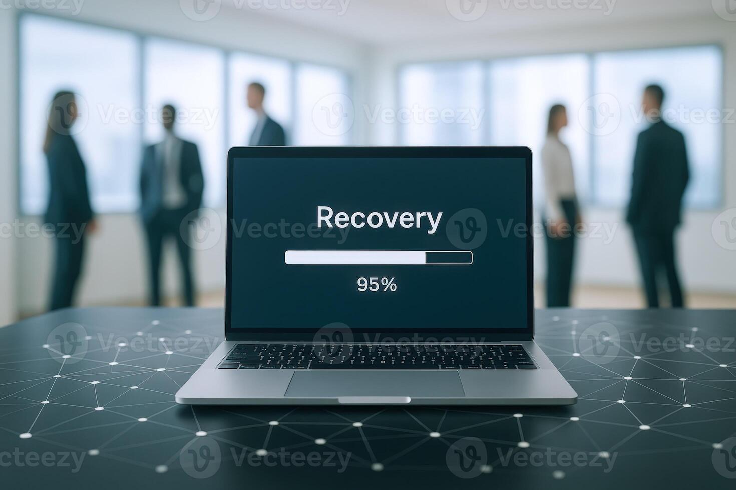 Data Recovery Process on Laptop with Business Team in Background - Information Technology Concept Pro Photo