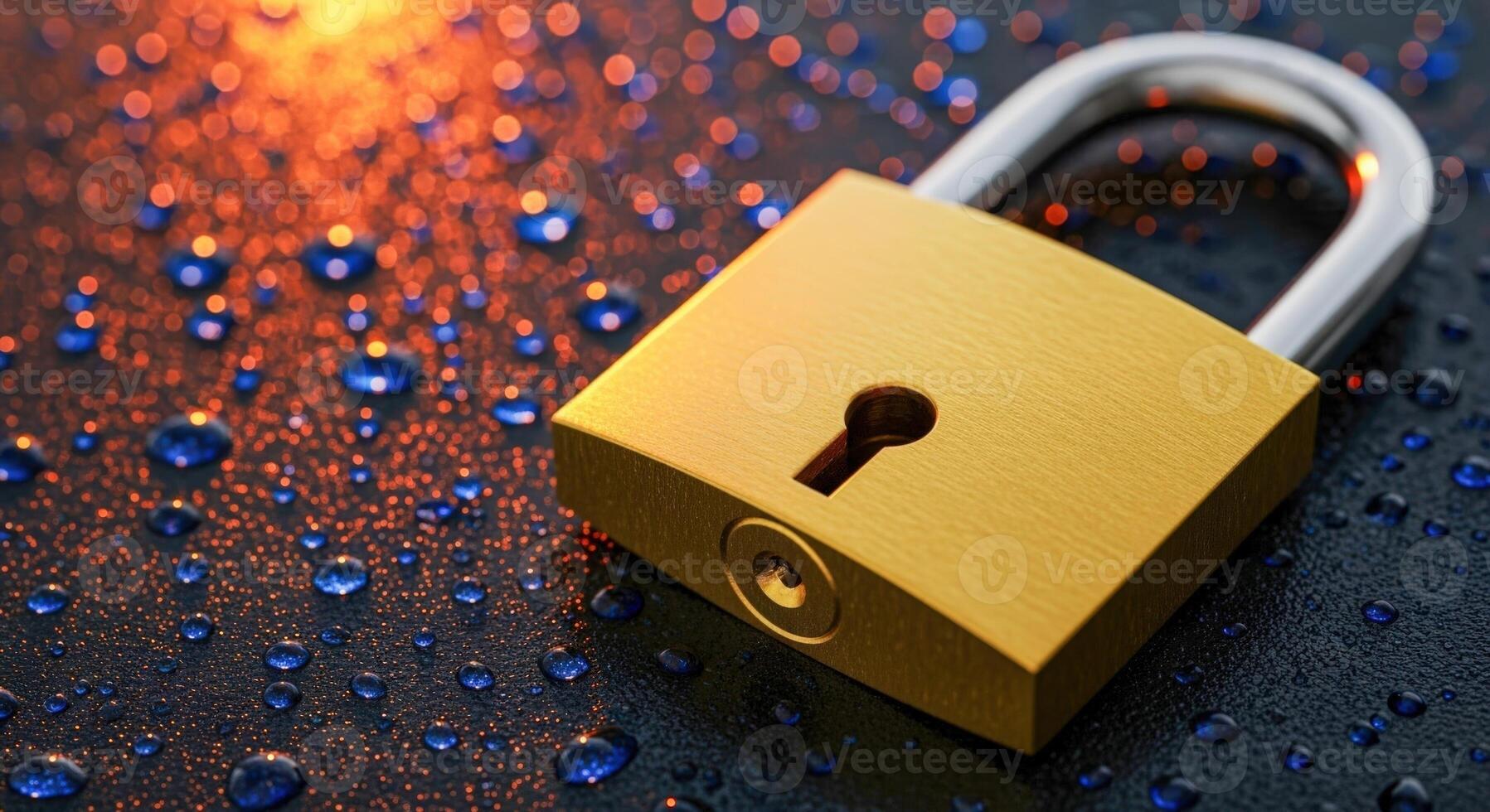 Padlock on Wet Surface Symbolizing Data Security, Privacy, and Protection in a Digital World Pro Photo