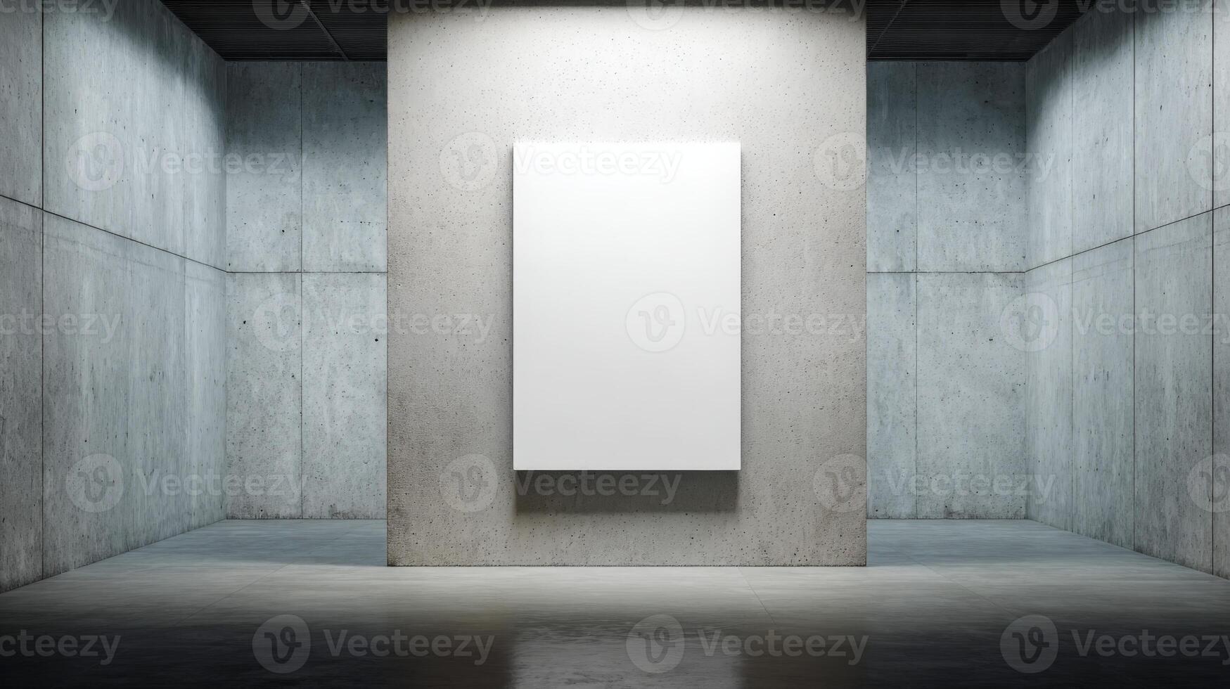 Modern Concrete Gallery Interior with Blank Canvas for Art Display, Contemporary Architecture and Empty Space Pro Photo