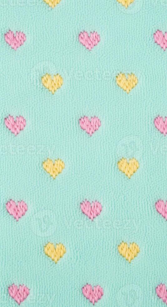 Pastel hearts pattern on a soft turquoise fabric for a cute and playful design Pro Photo