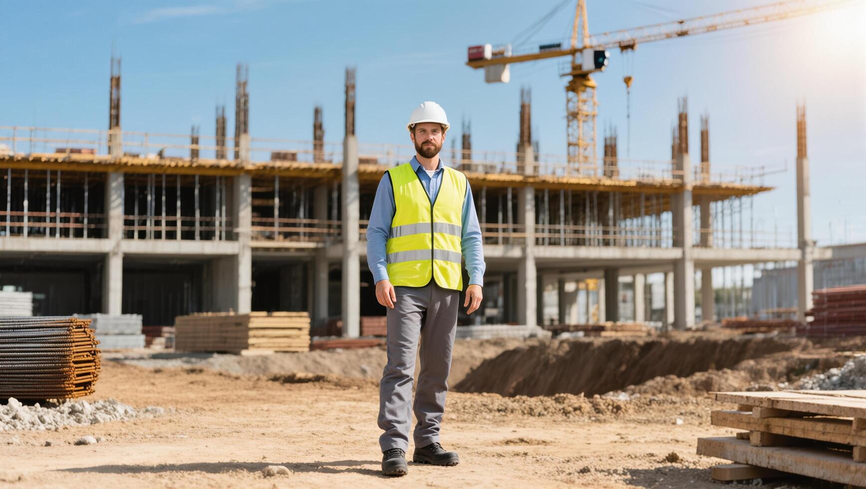 Construction Worker on Site Overseeing Building Progress at a Developing Location During Daylight Hours Free Photo