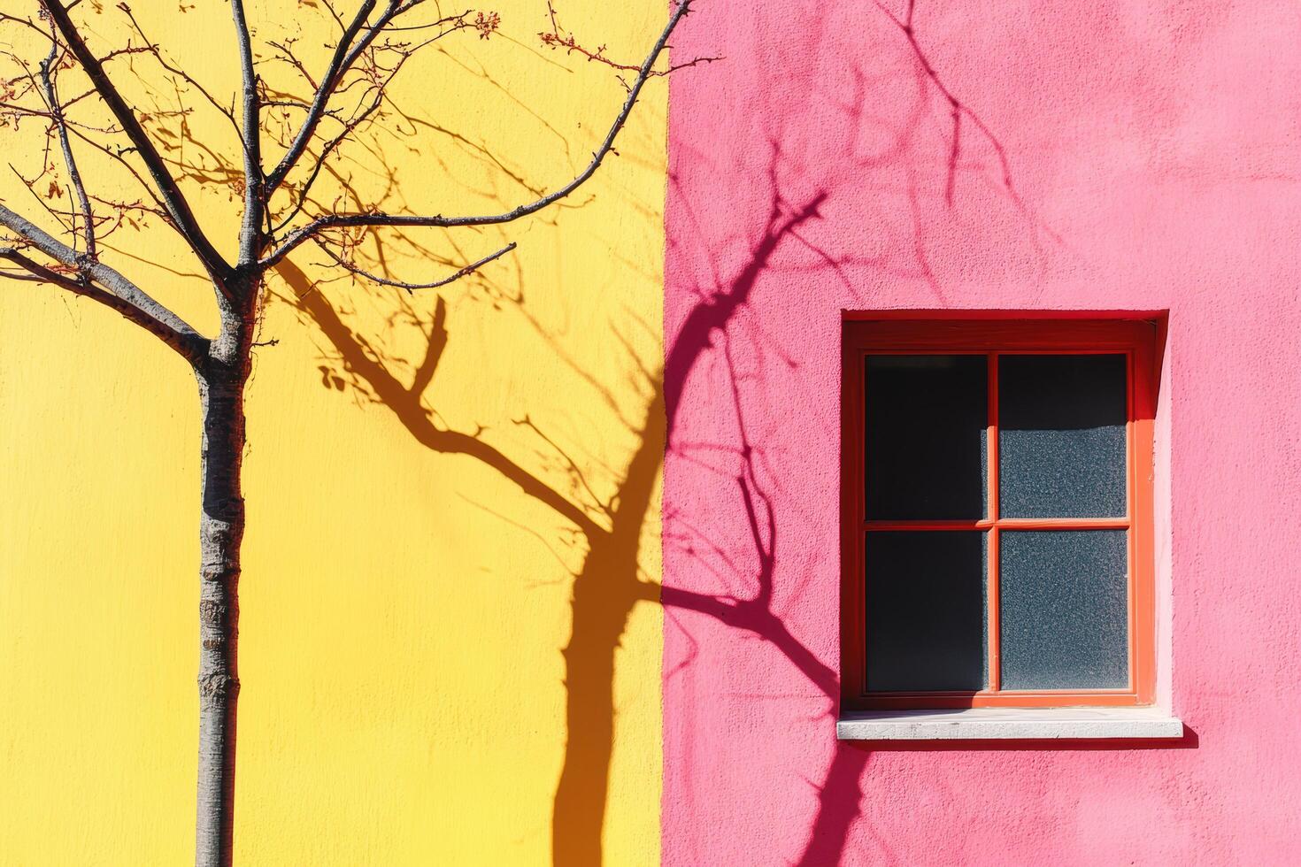 Colorful wall with tree shadow and window in urban setting Free Photo