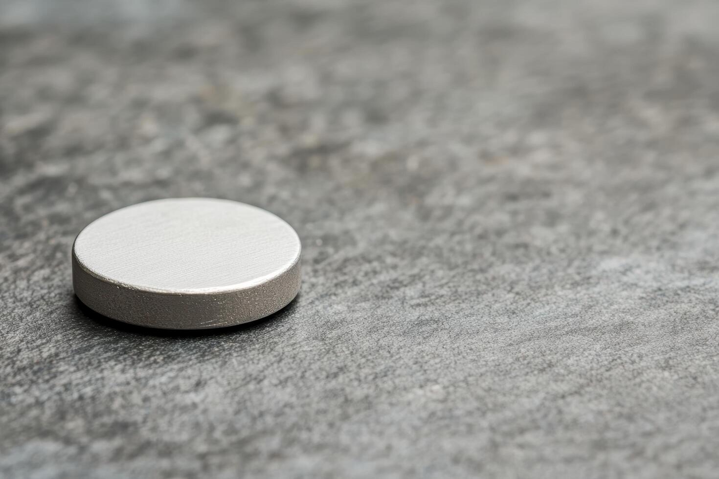 Round metallic object resting on a textured surface in a well-lit setting Free Photo