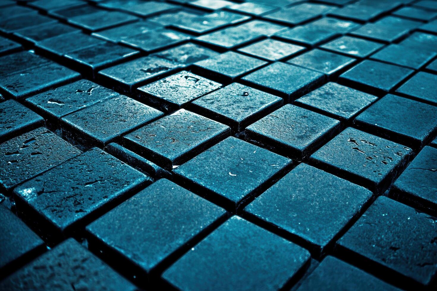 Close view of dark blue tiles arranged in a unique pattern on a surface photo