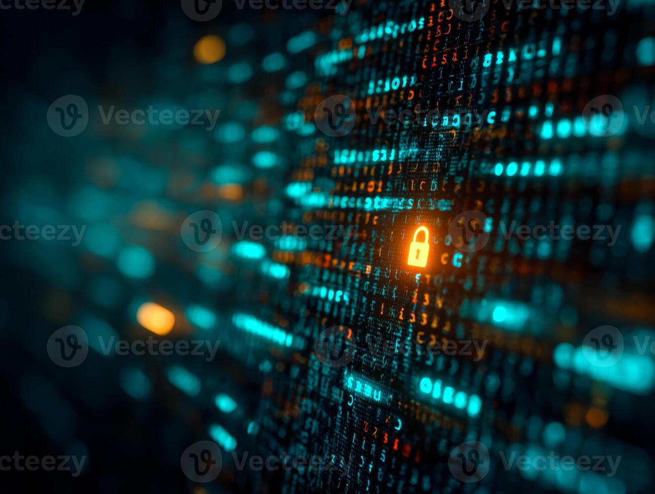 Digital security and data encryption represented by glowing lock symbol on a futuristic screen Pro Photo