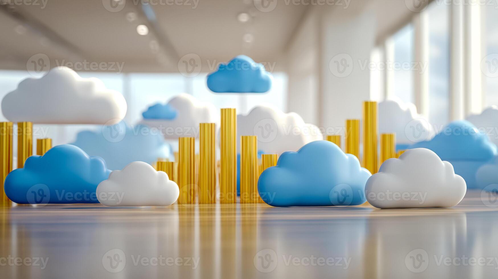 Cloud and bar chart data visualization in a modern office setting Pro Photo
