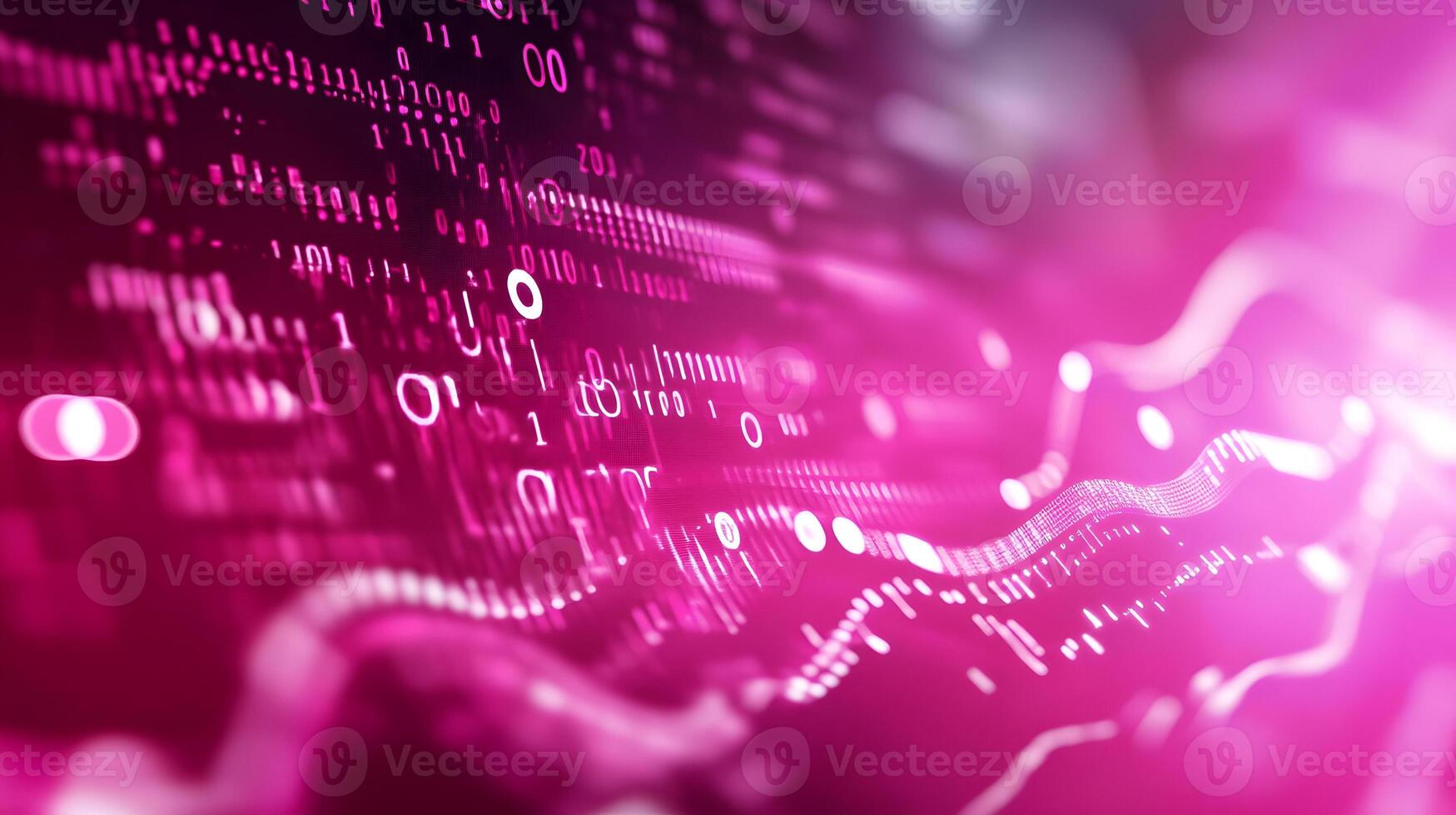 Abstract Digital Background of Pink and Purple Waves with Binary Code and Glowing Effect Pro Photo