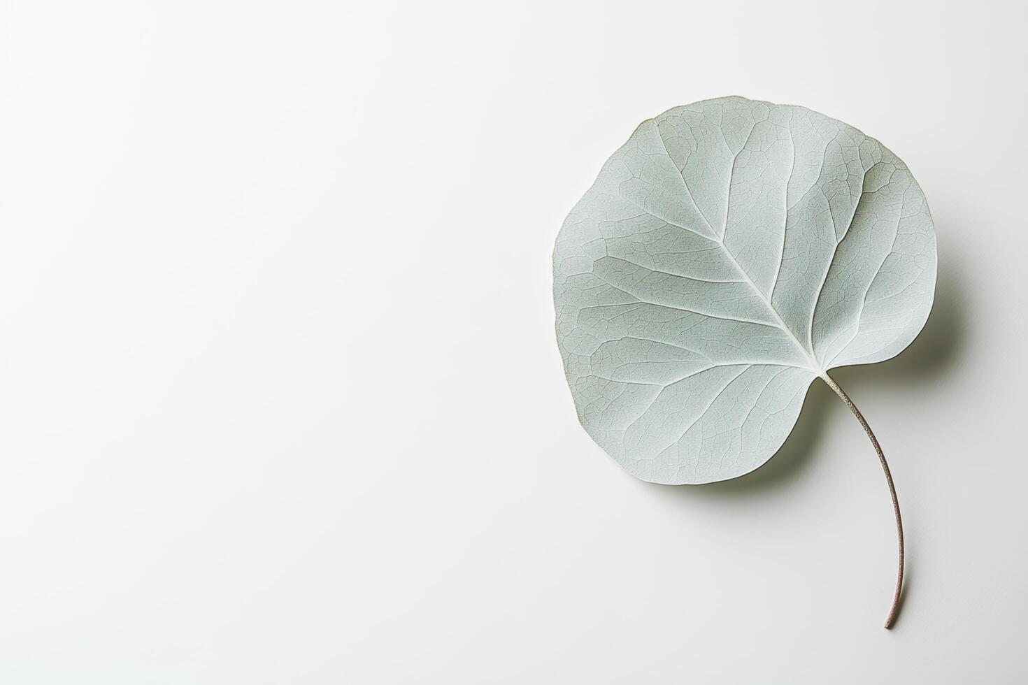 Leaf resting on a smooth surface in a minimalist setting Free Photo
