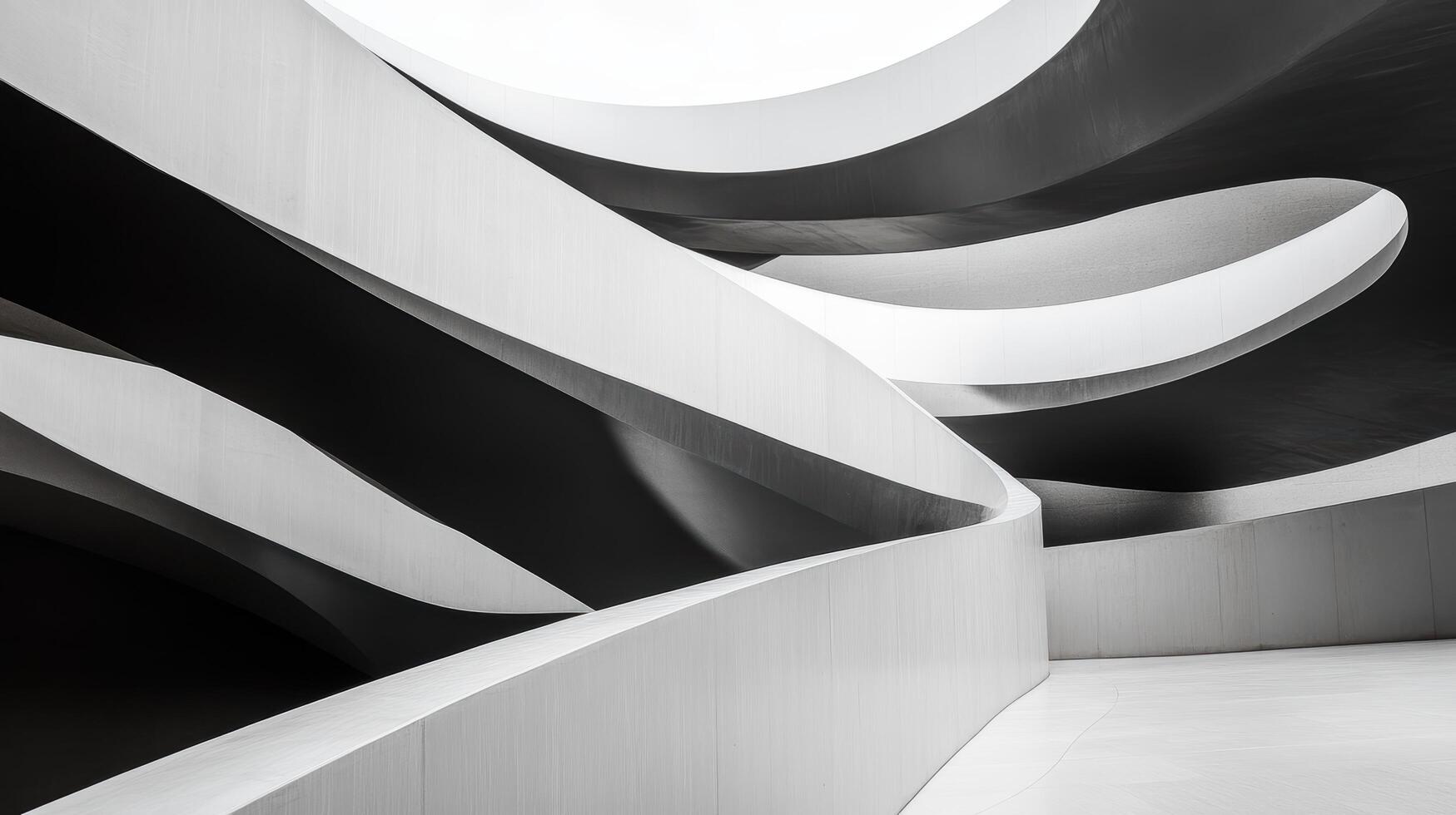 Modern architecture design featuring elegant curves in a monochrome setting photo