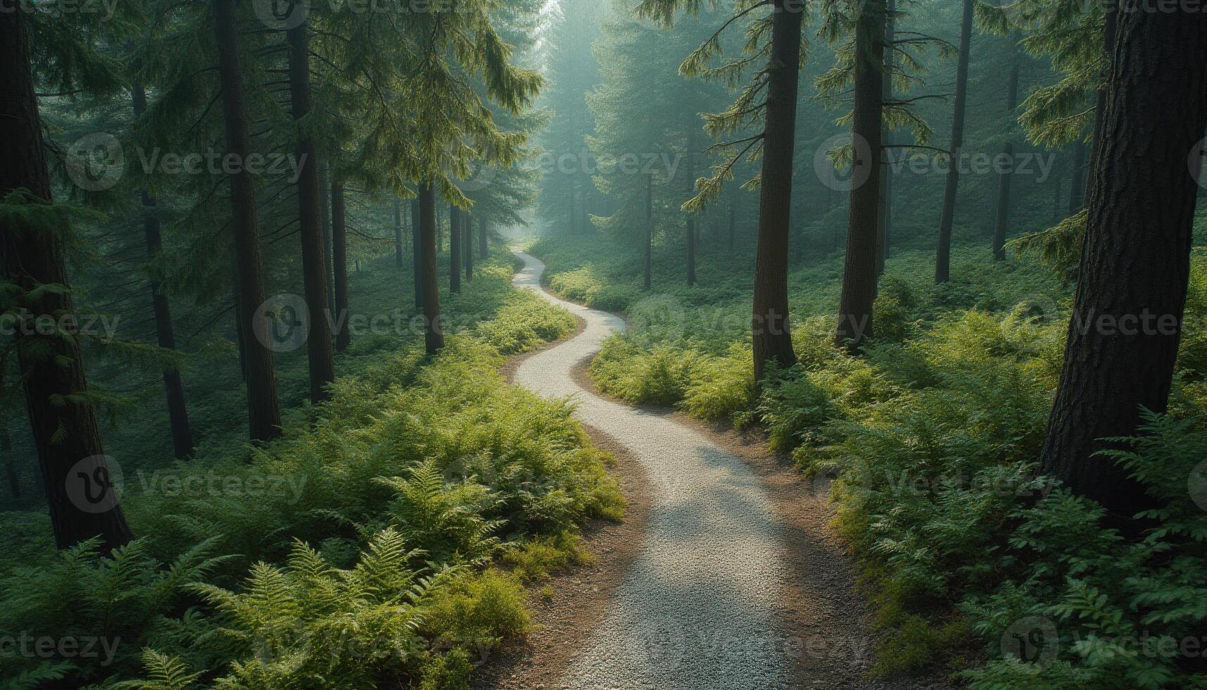 A path in the middle of a forest with trees Pro Photo