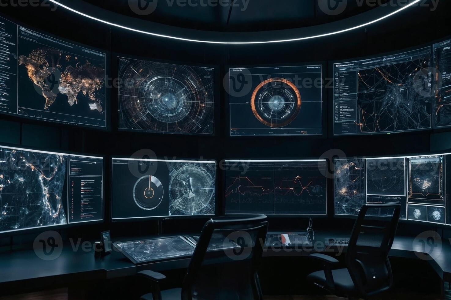 Multiple Computer Screens Displaying AI Neural Network Visualization Pro Photo