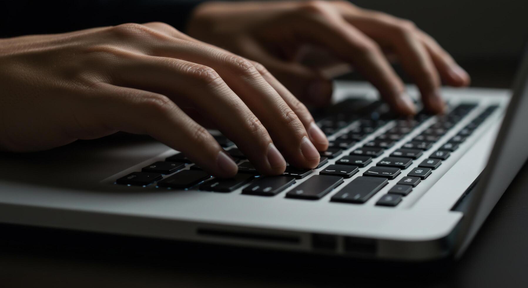 Typing on laptop keyboard for communication or programming Free Photo
