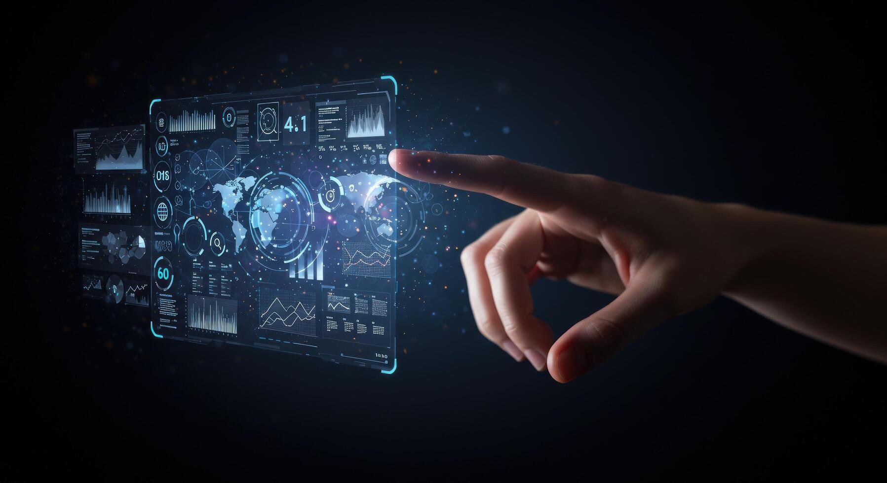 Human hand interacting with futuristic touchscreen interface technology photo