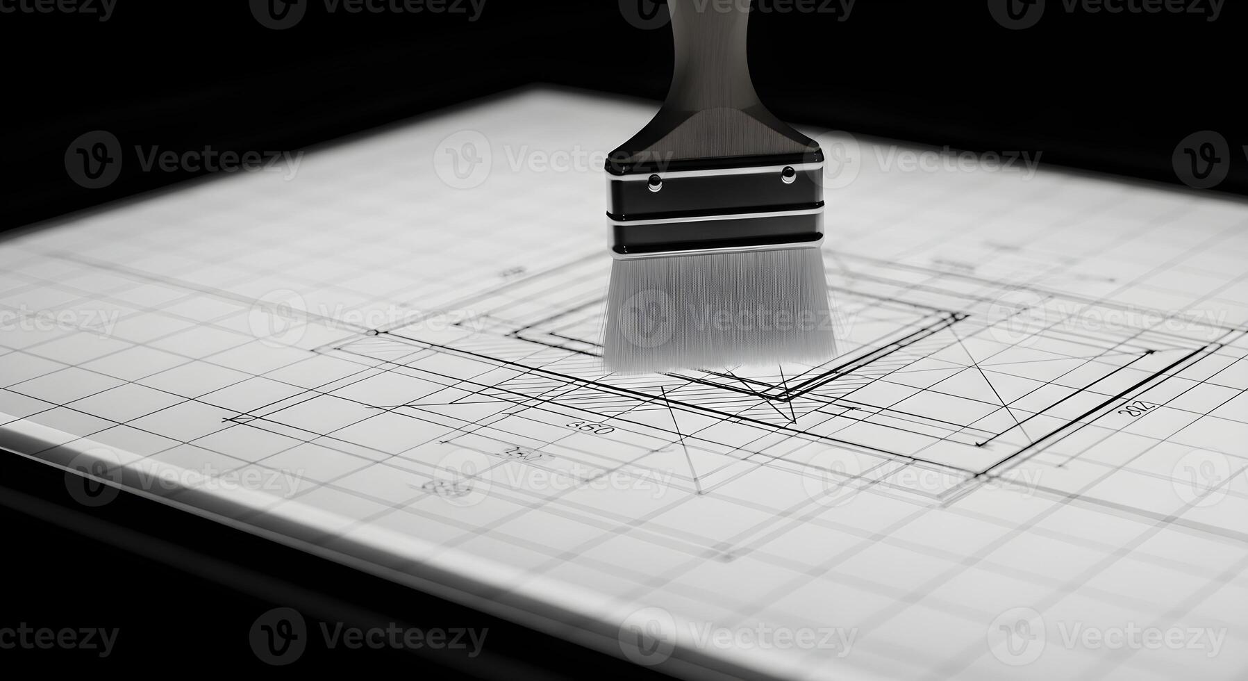 Drafting brush on light table with translucent sheets. Emphasizes sharp textures and crisp edges. Clean, brand-neutral, noise-free. Pro Photo