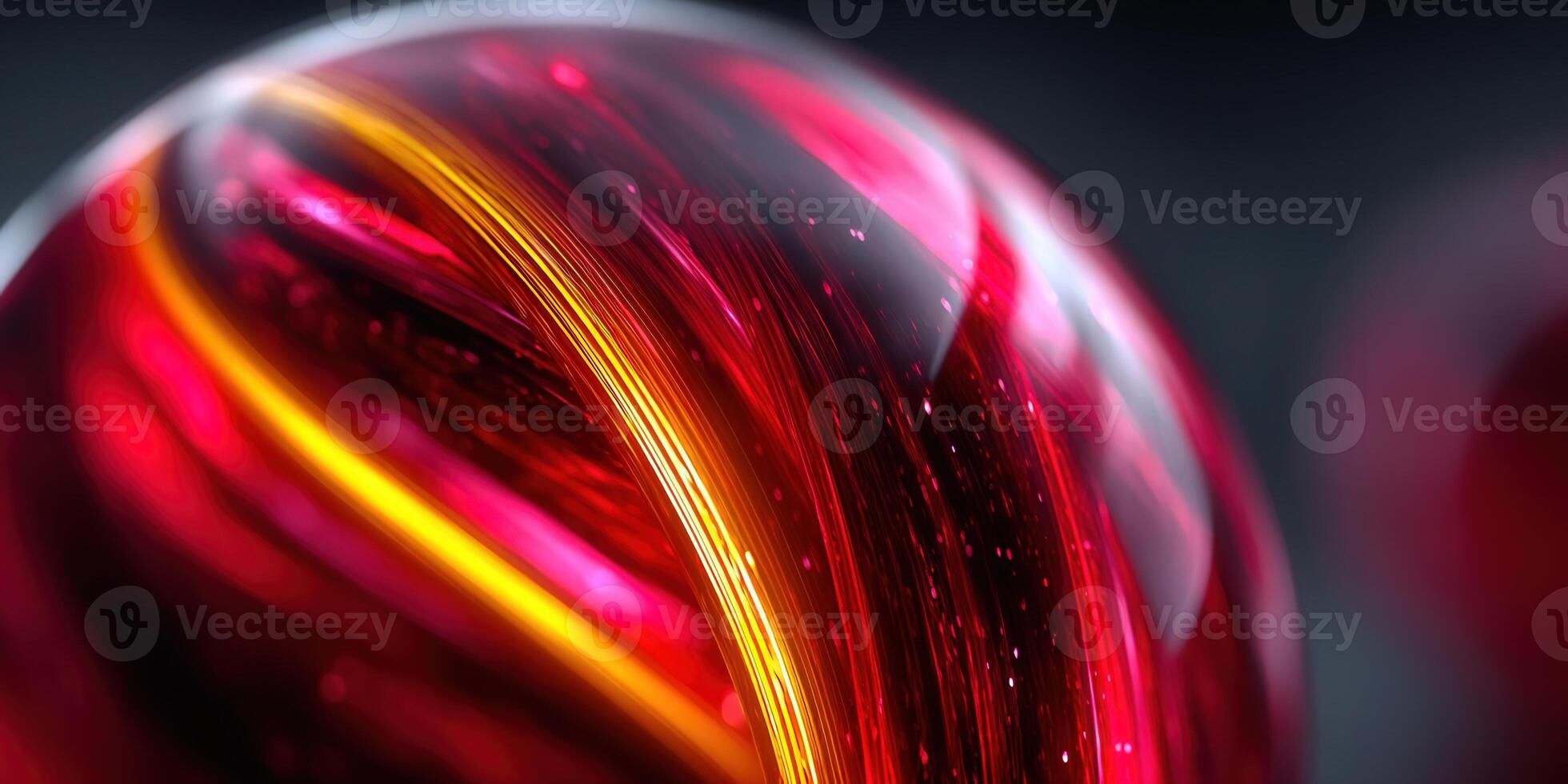 Abstract glass orb with vibrant red and yellow light trails, creating a dynamic visual effect. Pro Photo