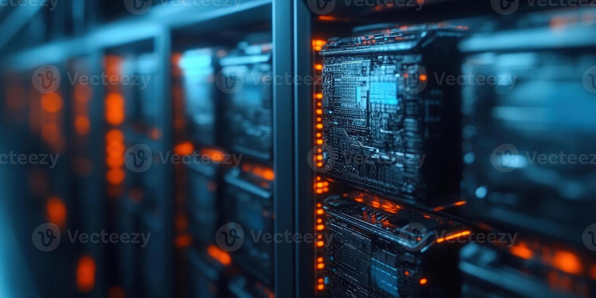 Server room filled with data servers, representing modern technology and digital infrastructure. Pro Photo
