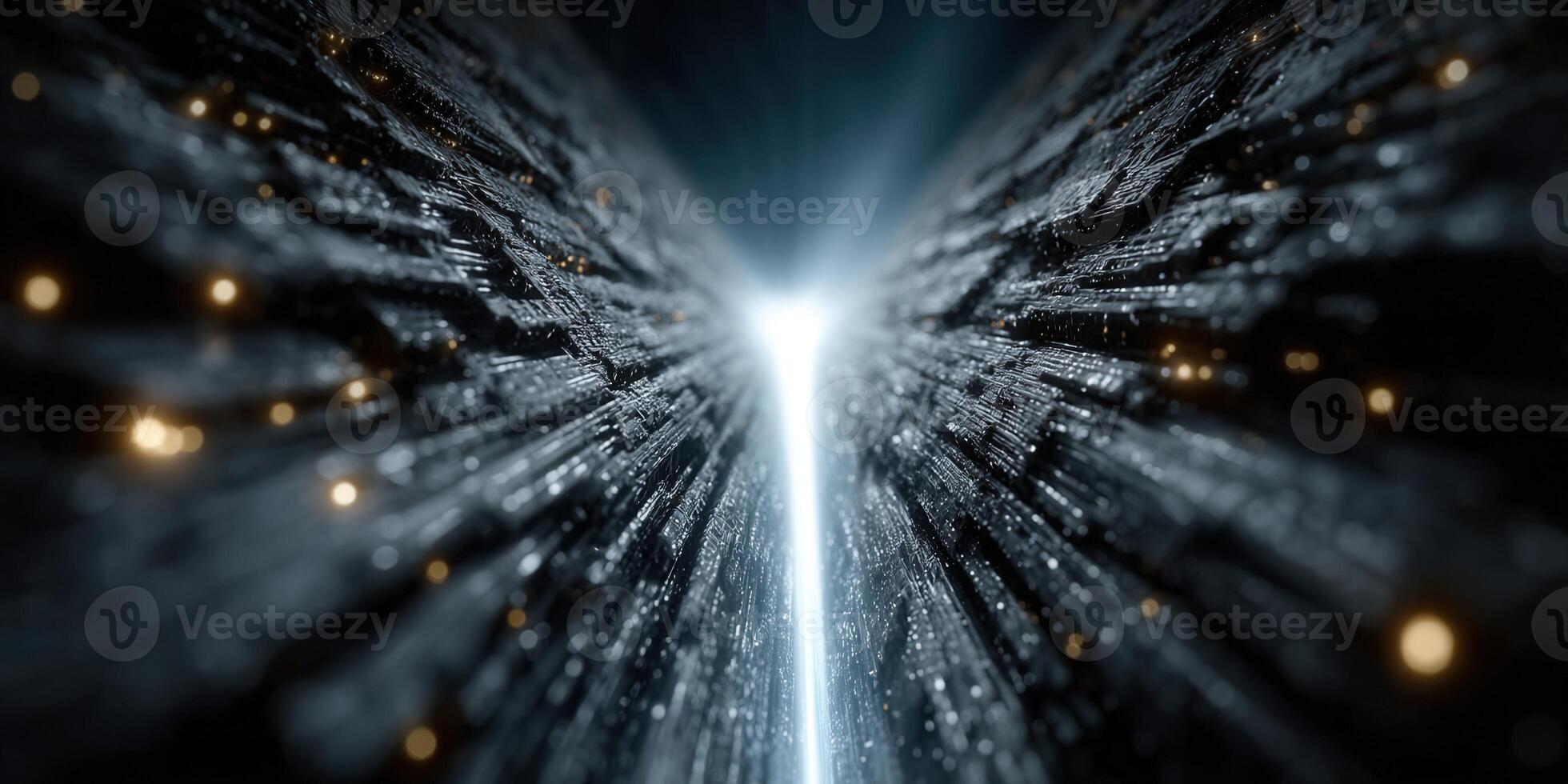 A stunning, abstract depiction of a digital path leading towards a bright, glowing light. Pro Photo