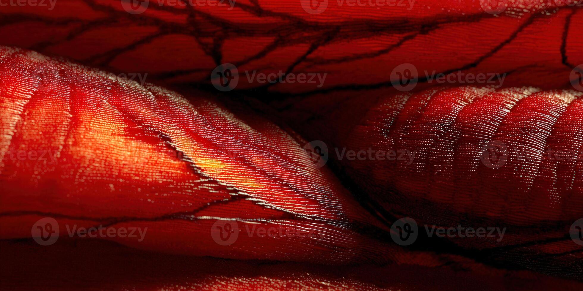 Detailed view of red fabric with subtle textures and intricate designs, creating a visual delight. Pro Photo