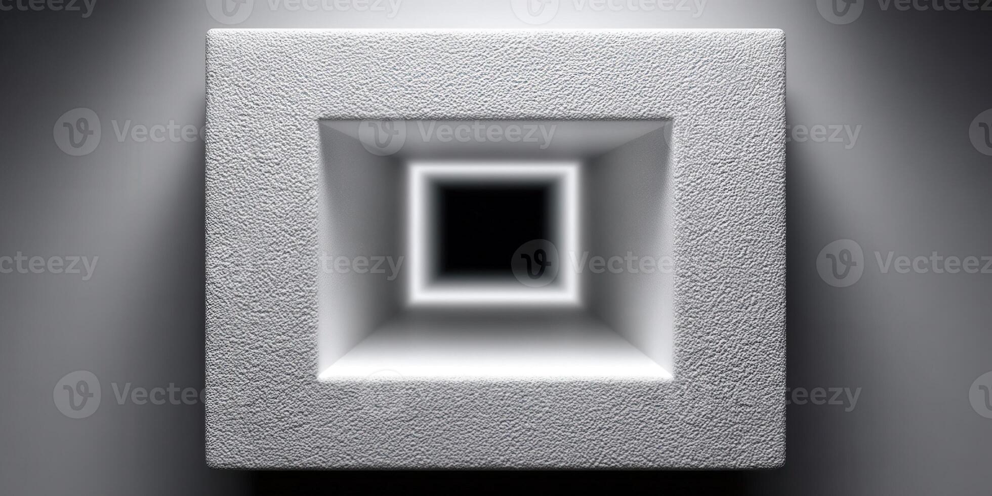 A minimalist design with a textured square and an illuminated opening, creating depth and interest. Pro Photo