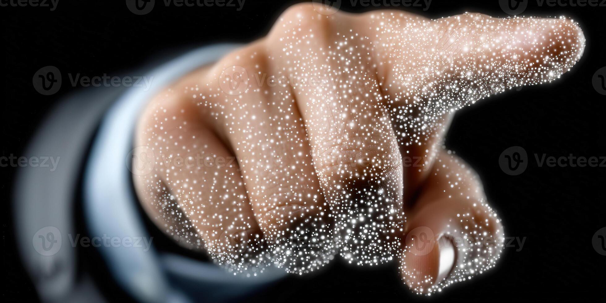 A hand with glowing digital particles points forward, a technological concept. Pro Photo