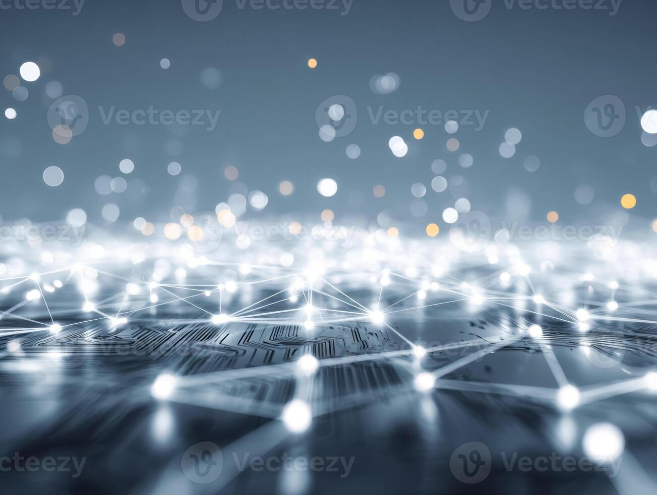 Abstract digital network connections glowing on a technological circuit board with blurred light effects symbolizing data flow and advanced communication systems Pro Photo