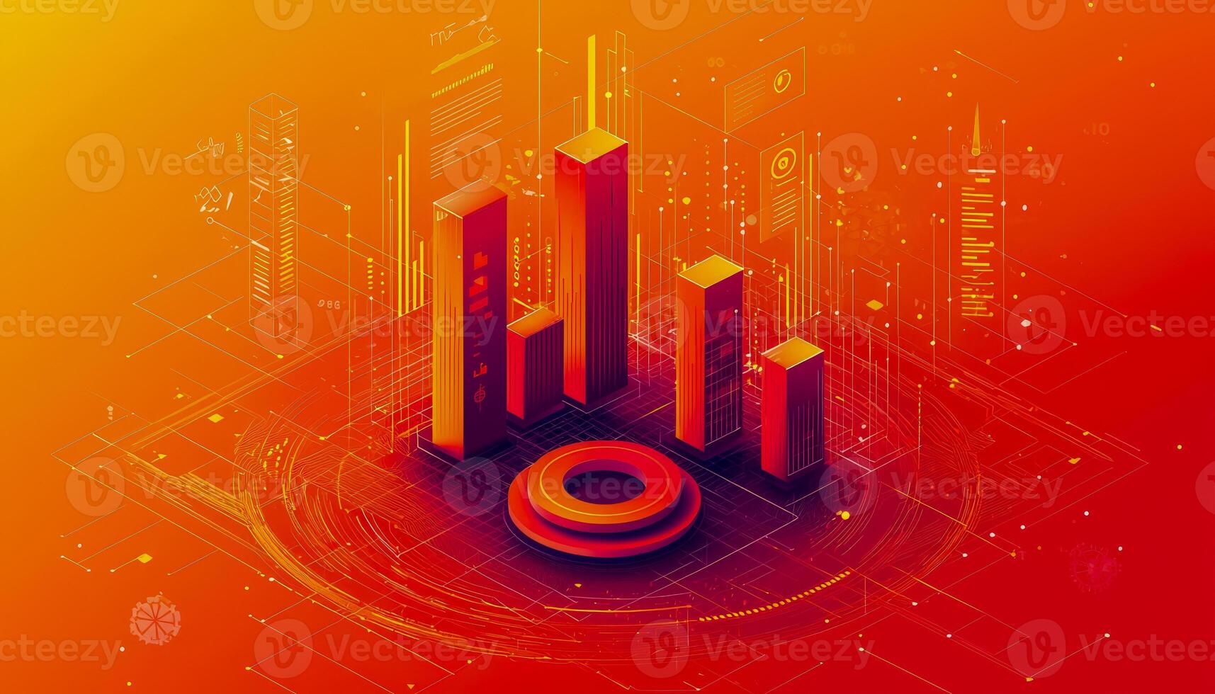 Futuristic data analytics with holographic bar graphs and digital interface design Pro Photo