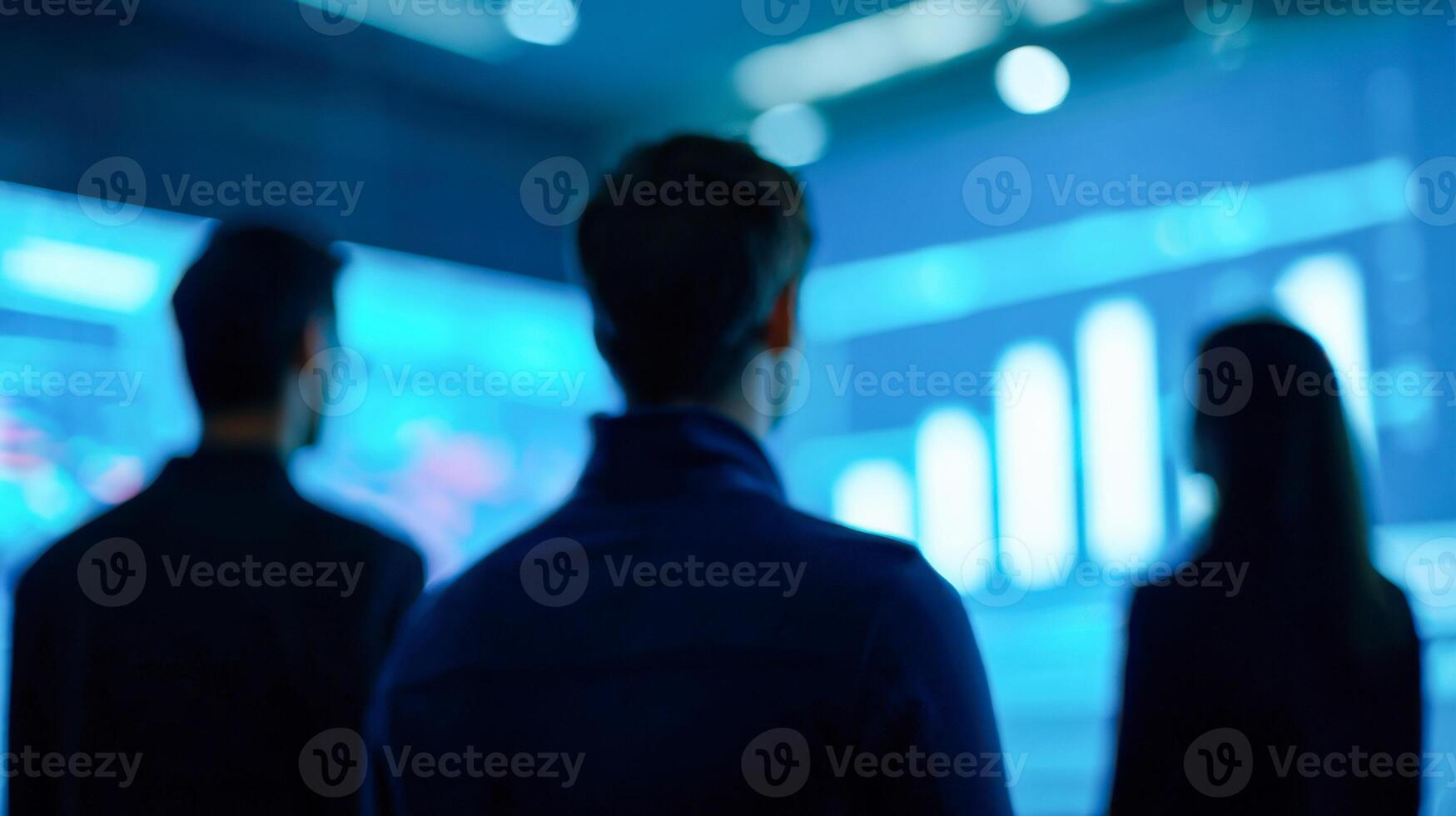 Startup team observes data trends in a modern workspace during a brainstorming session Pro Photo
