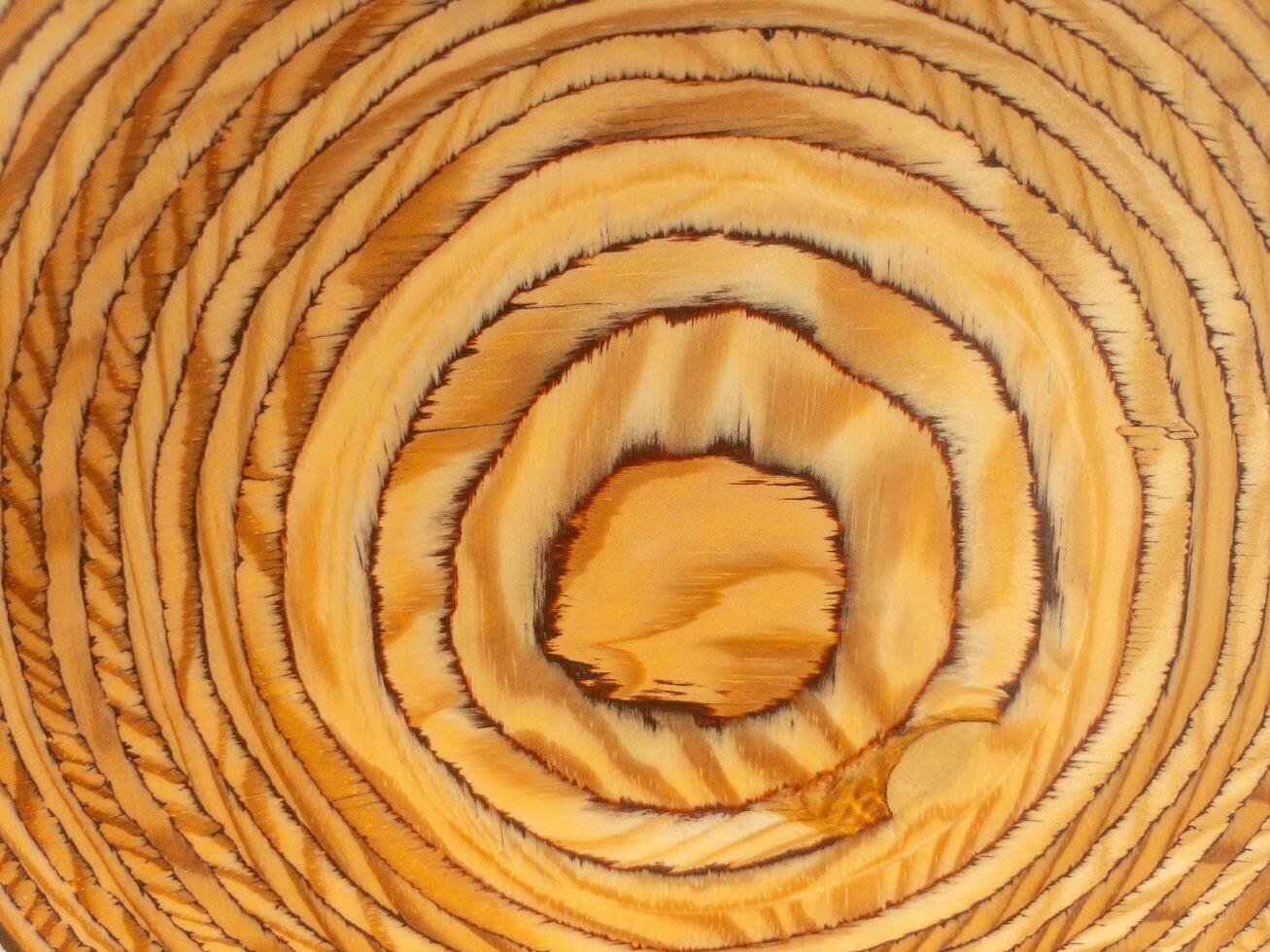 Concentric tree rings wood grain macro close-up of a sawn log with golden, rustic tones for natural background or texture photo