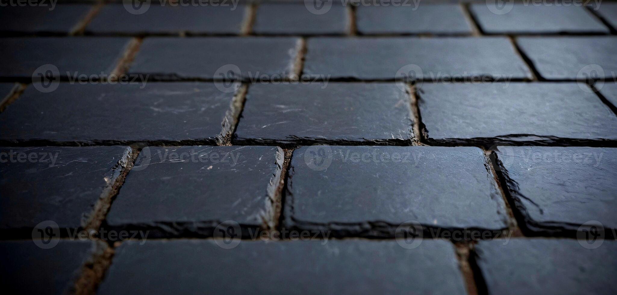 Textured dark slate roof tiles close up with shallow depth of field creating a modern, elegant backdrop Pro Photo