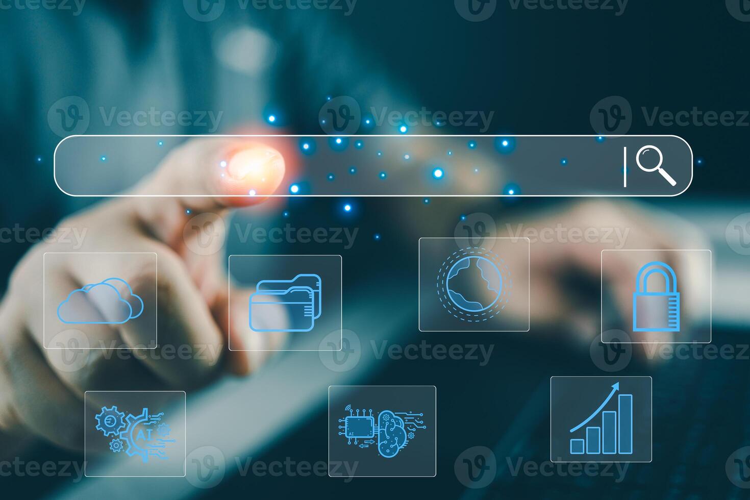 Ai tech concept, search engine bar for data search optimization by artificial intelligence Pro Photo
