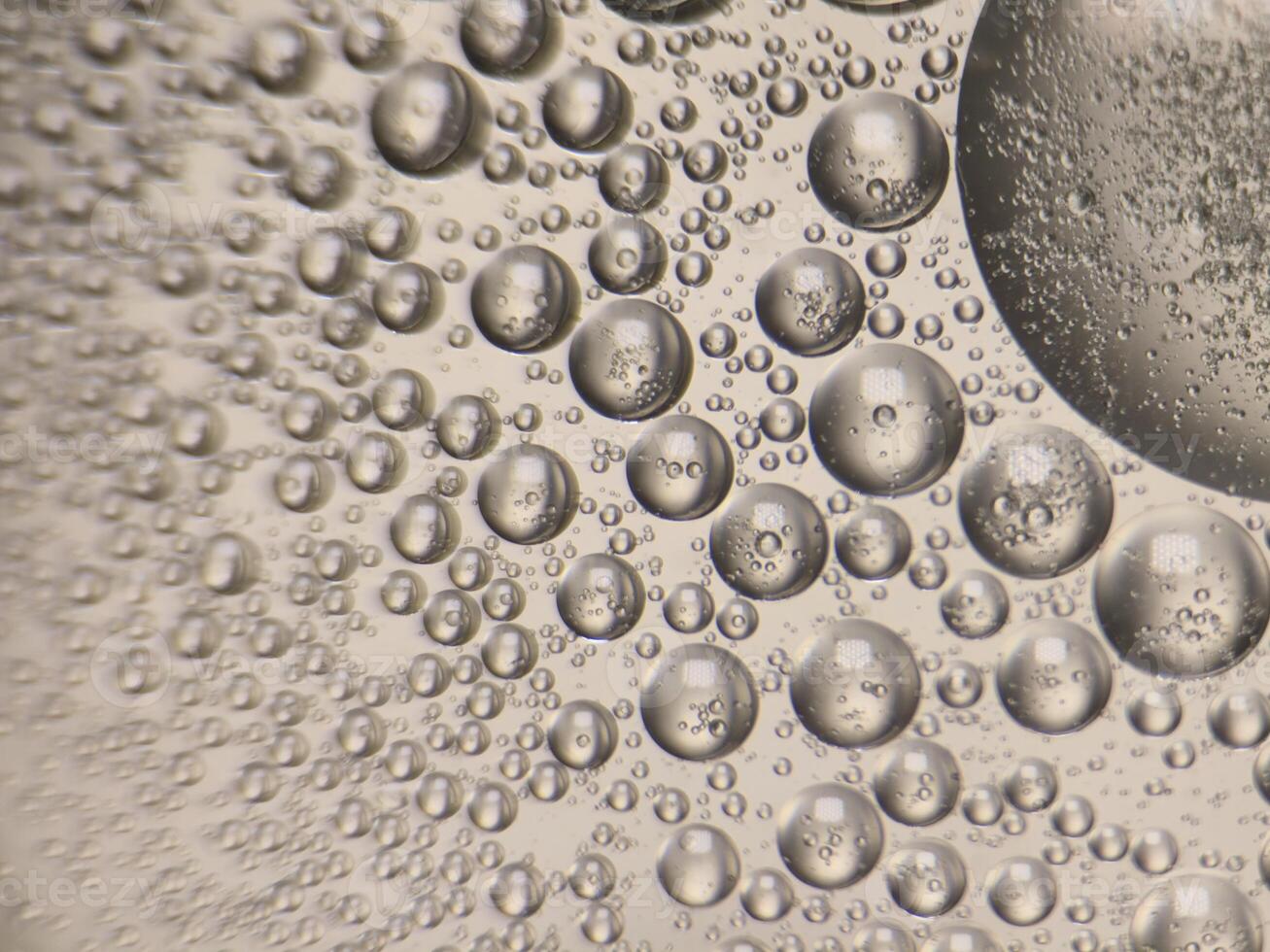 Close up of transparent bubbles floating on liquid surface with abstract pattern Pro Photo
