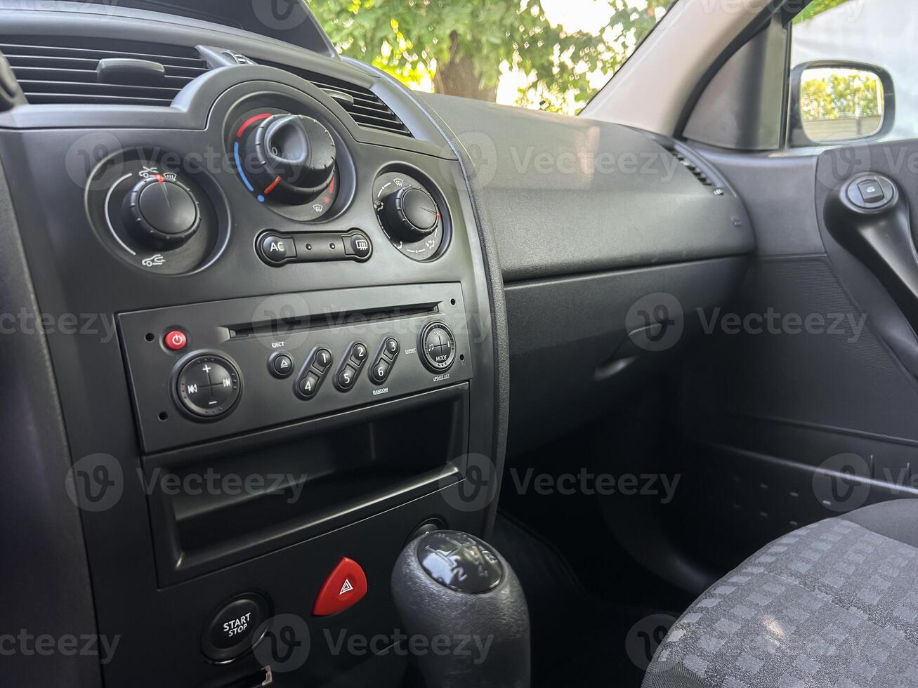 This is an interior view of a modern automobile featuring a stylish dashboard that includes various controls and a gear shift, emphasizing comfort and luxury while enhancing the driving experience Pro Photo