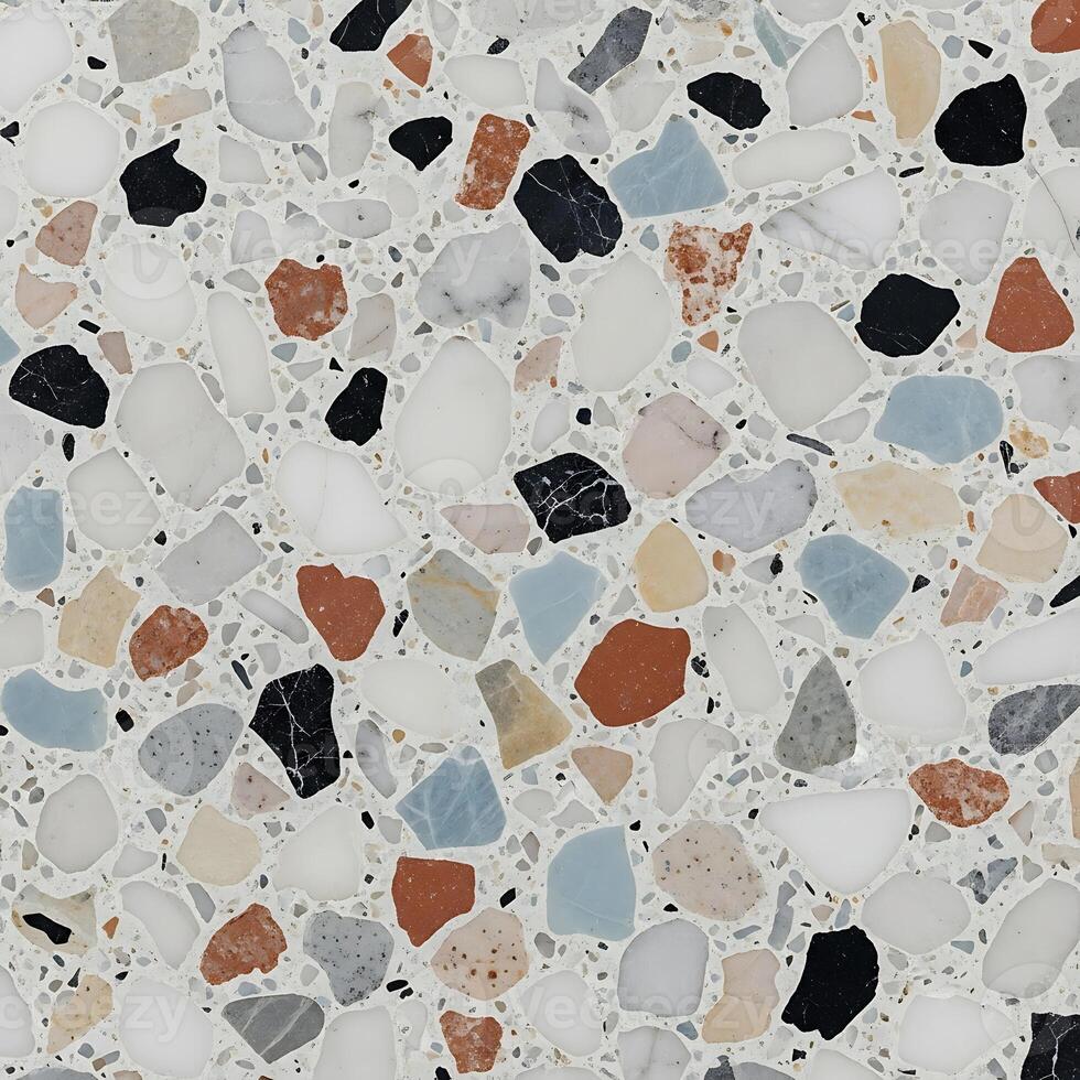 Elegant terrazzo design pattern background top view with small pebbles Pro Photo