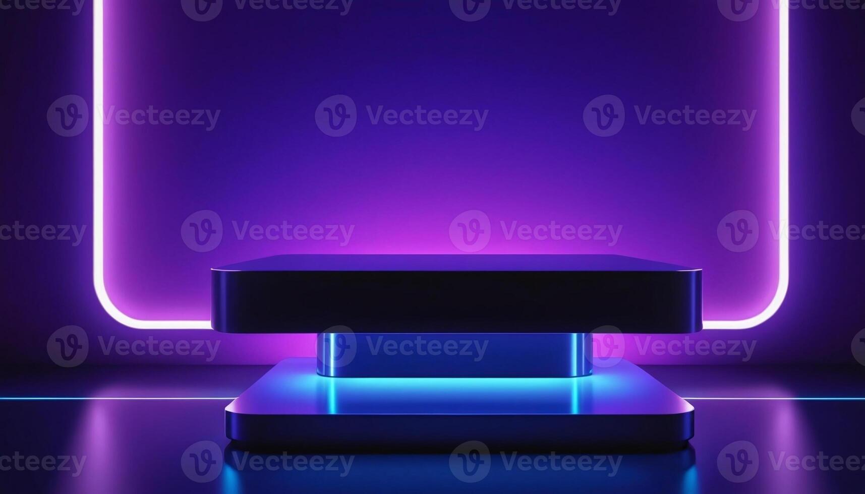 Neon bokeh illuminated metallic product podium in dynamic view for cyberpunk aesthetics or tech advertisements Pro Photo