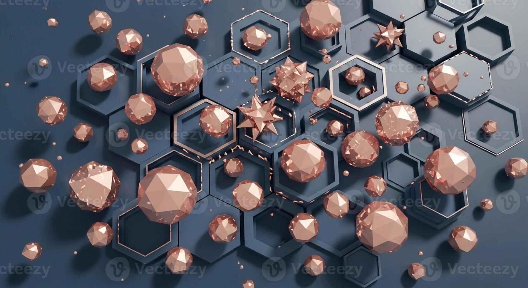 3d rendering of a hexagonal pattern with many copper spheres Pro Photo