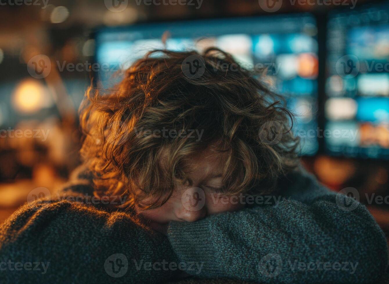Tired boy sleeping on desk after working on computer late at night Pro Photo