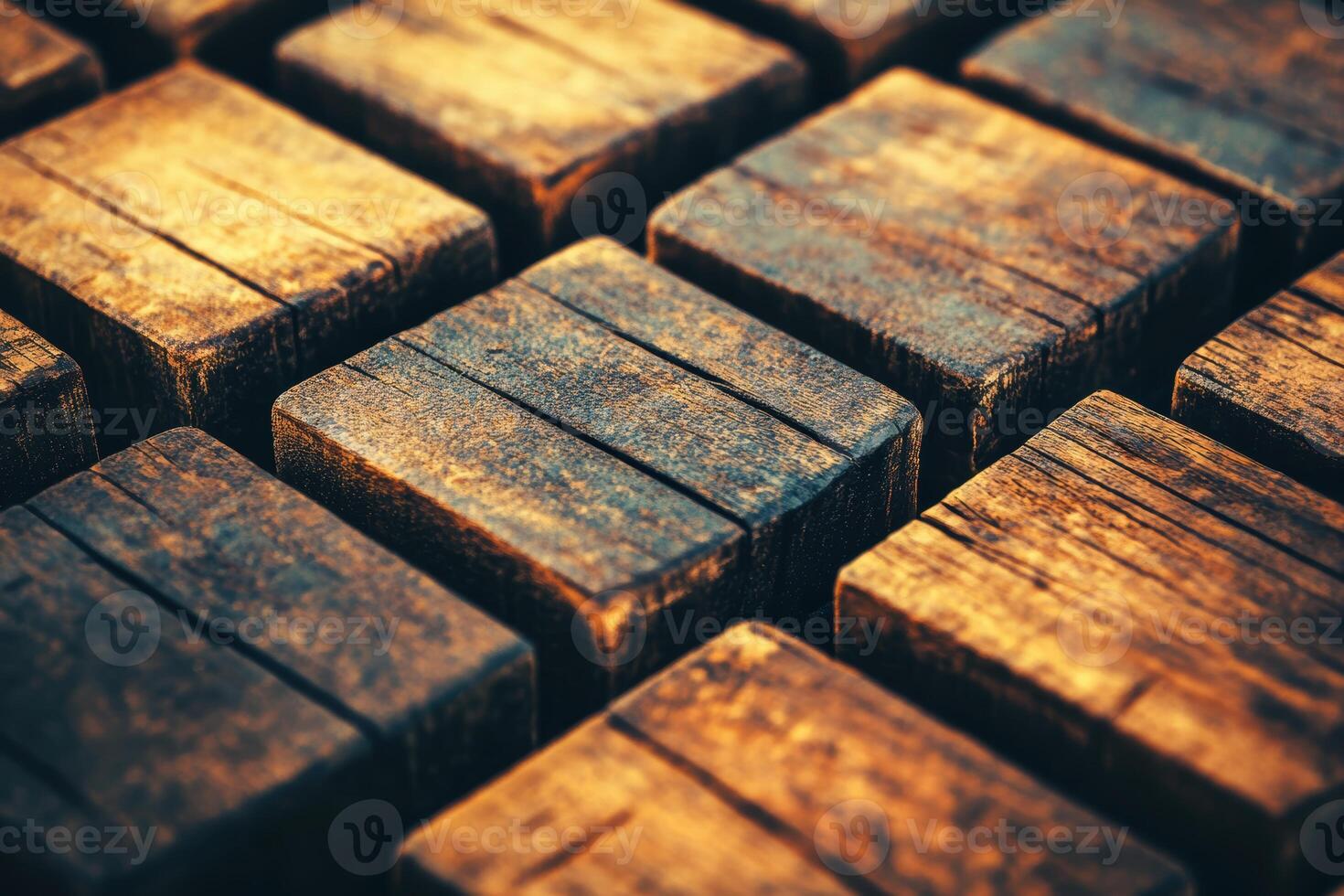 Wooden blocks arranged in a pattern on a surface Pro Photo