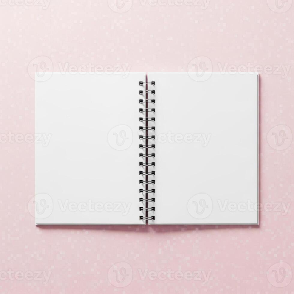 An open spiral bound notebook with blank white pages presented isolated on white background Pro Photo