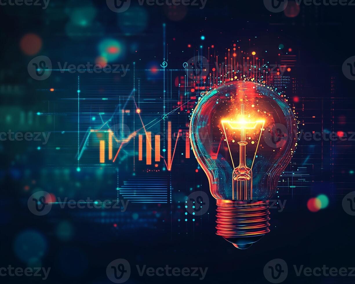 Illuminated Lightbulb with Data Visualization Graphics Pro Photo
