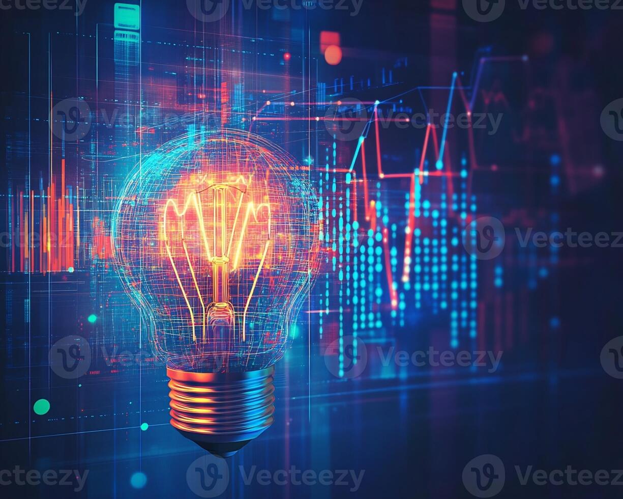 Lightbulb with Digital Data Visualization Background Pro Photo