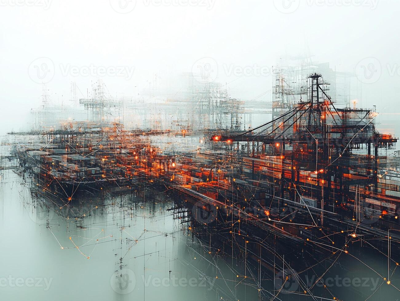 Digital Rendering of Container Port with Network Overlay Pro Photo