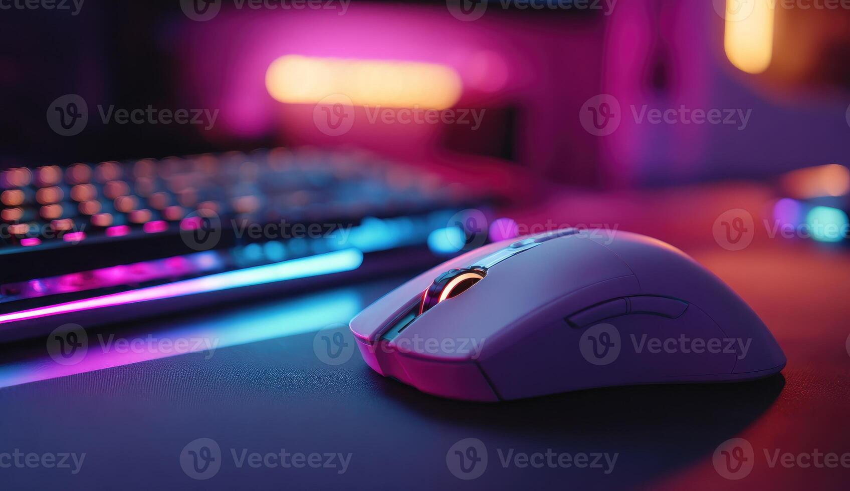 A computer mouse sits on a desk with a keyboard in the background Pro Photo