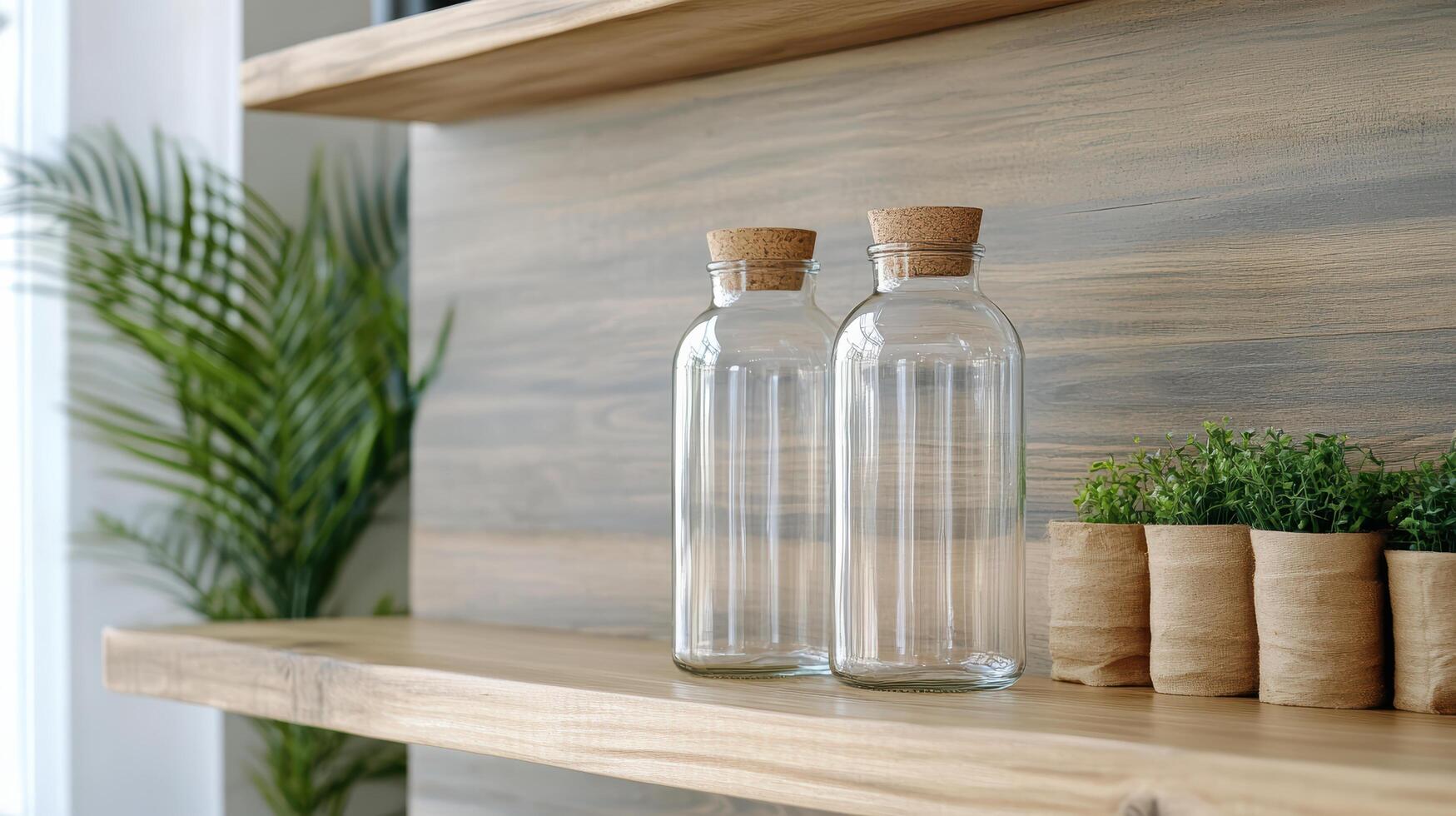 Two empty bottles on a shelf Free Photo
