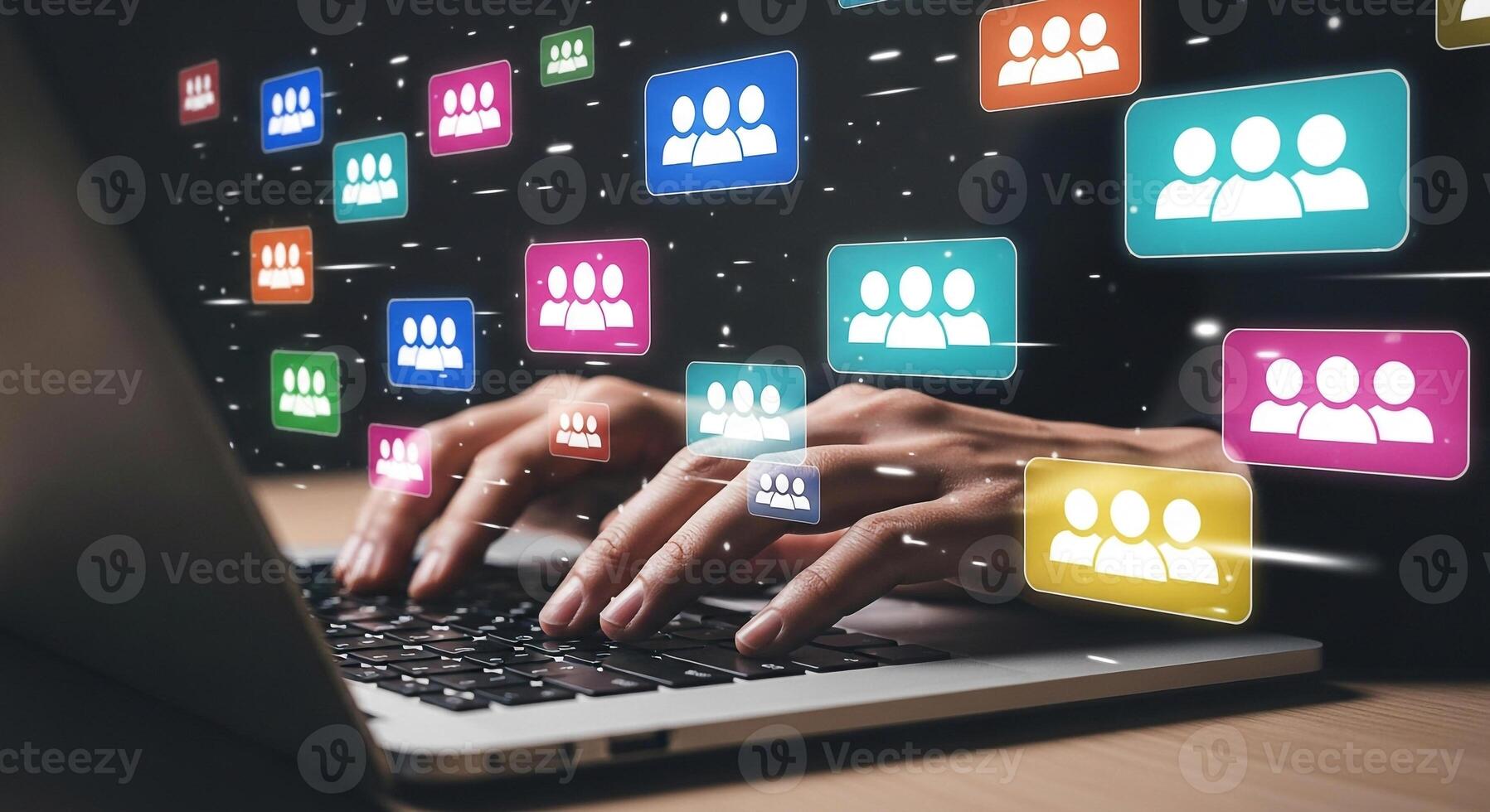 Person using laptop computer to connect with social media network building online community and relationships Digital communication networking and social interaction concept Pro Photo