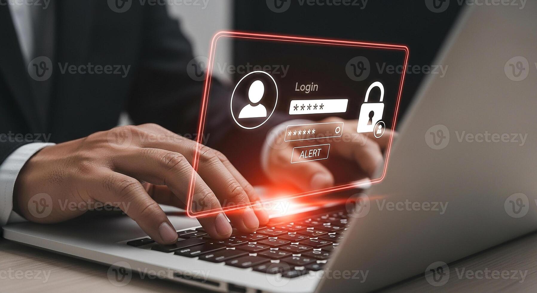 Businessman Logging into Secure System with Two-Factor Authentication on Laptop, Cybersecurity Concept Pro Photo