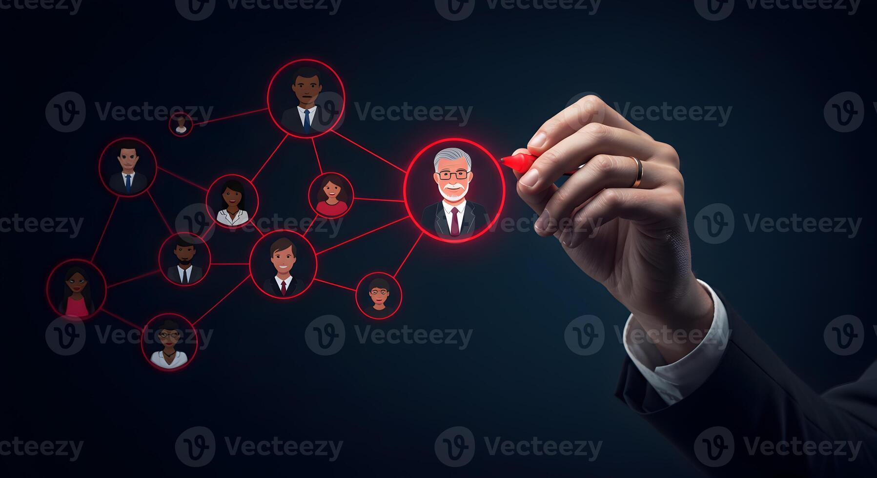 Hand drawing a network of diverse business professionals highlighting a senior executive concept of leadership teamwork and global networking in a modern business setting Pro Photo