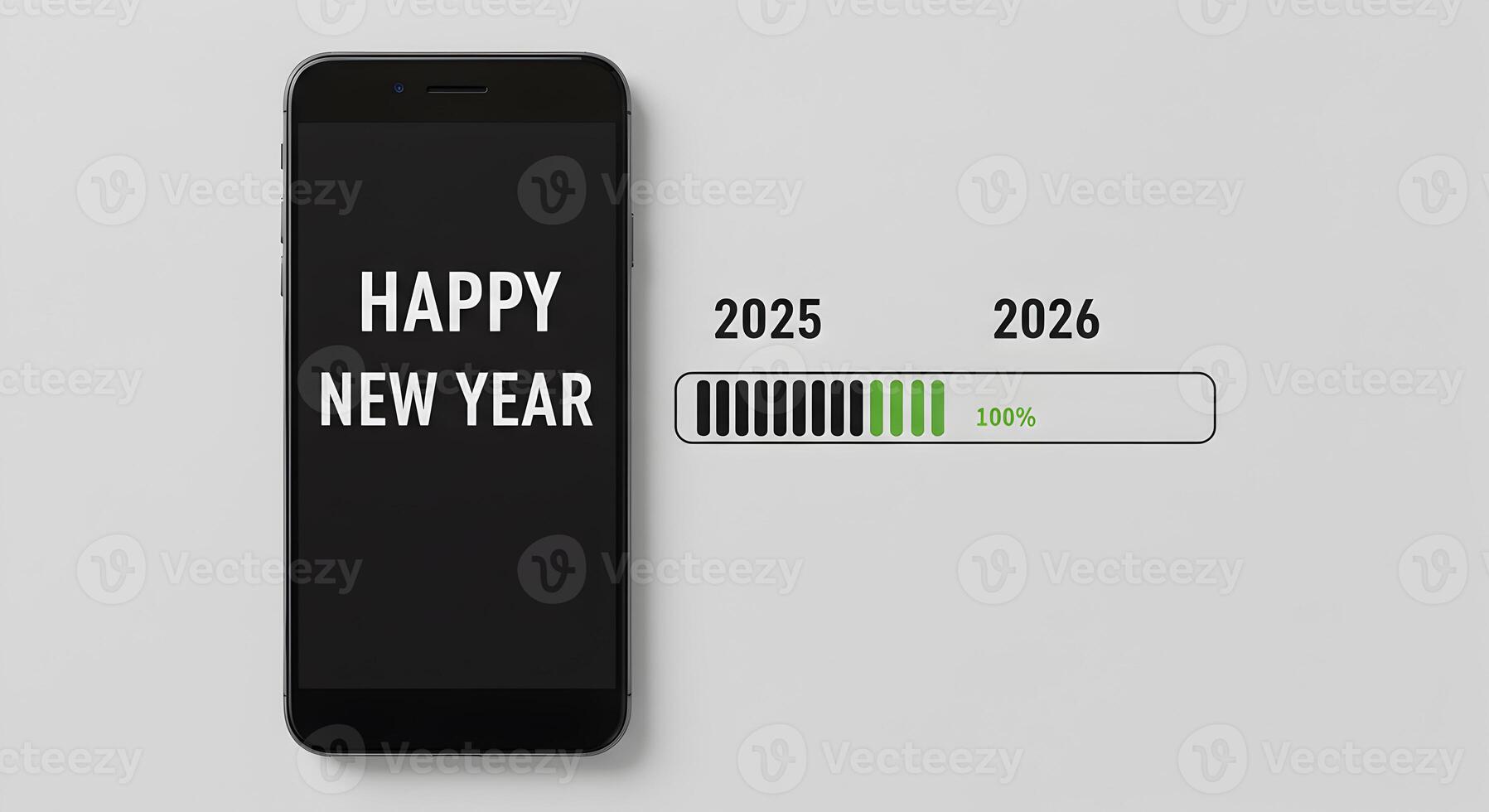 Smartphone Displaying Happy New Year Message with 2026 Progress Bar Loading on White Background Concept of New Years Countdown and Festive Celebration Pro Photo